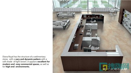 这是一款容易使用的产品,因为颜色比较温馨,感觉比较温暖,很多场合已经进行搭配。大面积使用,会发现这个颜色并不是非常强烈,可以把它用在机场或者是购物商店,还有图书馆等等这些地方。如果用在马赛克上面,会产生出非常有意思的效果,令人回味,如果和白色的马赛克、大理石进行搭配,会非常有感觉。