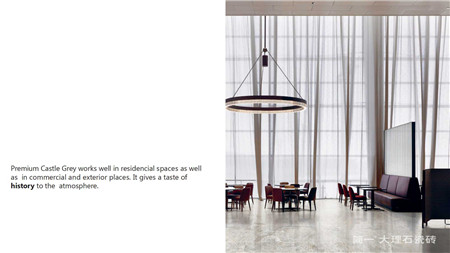 这是和其他的产品应用是不一样的,因为这款产品有着天然的机理,它具有浅灰色的碎片表面,能够创建与许多其他产品非常匹配的动态图案。在设计上面比较具有特殊性,非常适合乡村、复古、工业的风格。