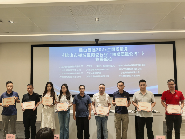 在全国“质量月”活动深入开展之际,佛山市禅城区陶瓷行业于近日在佛山市禅城区行政服务中心成功举办“陶瓷质量公约”签署及颁证仪式。本次活动作为2025年全国“质量月”系列重要活动之一,旨在推动行业质量提升、强化企业责任意识,首批共有20余家企业荣获“陶瓷质量公约”签署单位称号。