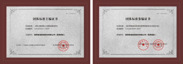 箭牌瓷砖作为在行业率先推出“止滑安全+”的品牌,在近日凭借其深厚的品牌实力和卓越的产品创新力,荣获了行业内两项重要的团体标准证书:《佛山陶瓷放心消费品牌规范》团体标准主编证书,以及《防滑陶瓷砖防滑性能等级要求及试验方法》团体标准参编证书。