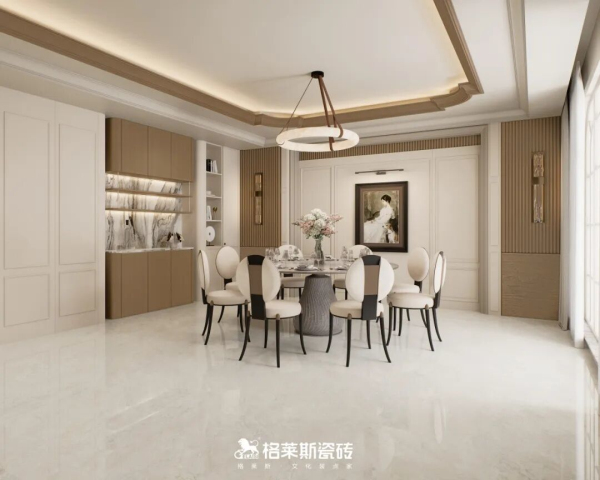 它不张扬,却极具感染力,能让身处其中的人不自觉慢下来、静下来。砖面透亮平滑,也能在触摸间感受到立体凹凸的肌理,浅模设计耐磨易洁,兼顾美学与实用。适用于打造书房、茶室、轻奢雅致的会客厅,瞬间提升空间格调,营造出宁静致远、闲适淡雅的居所。