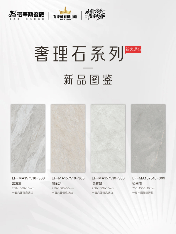 高粘度技术结合肌纹墨水打造立体凹陷肌理,让美不止于观,更可触碰。新大理石工艺的加持让产品历久弥新,它不喧宾夺主,却能以其丰富的细节和质感,成为空间中默默散发魅力的存在。
