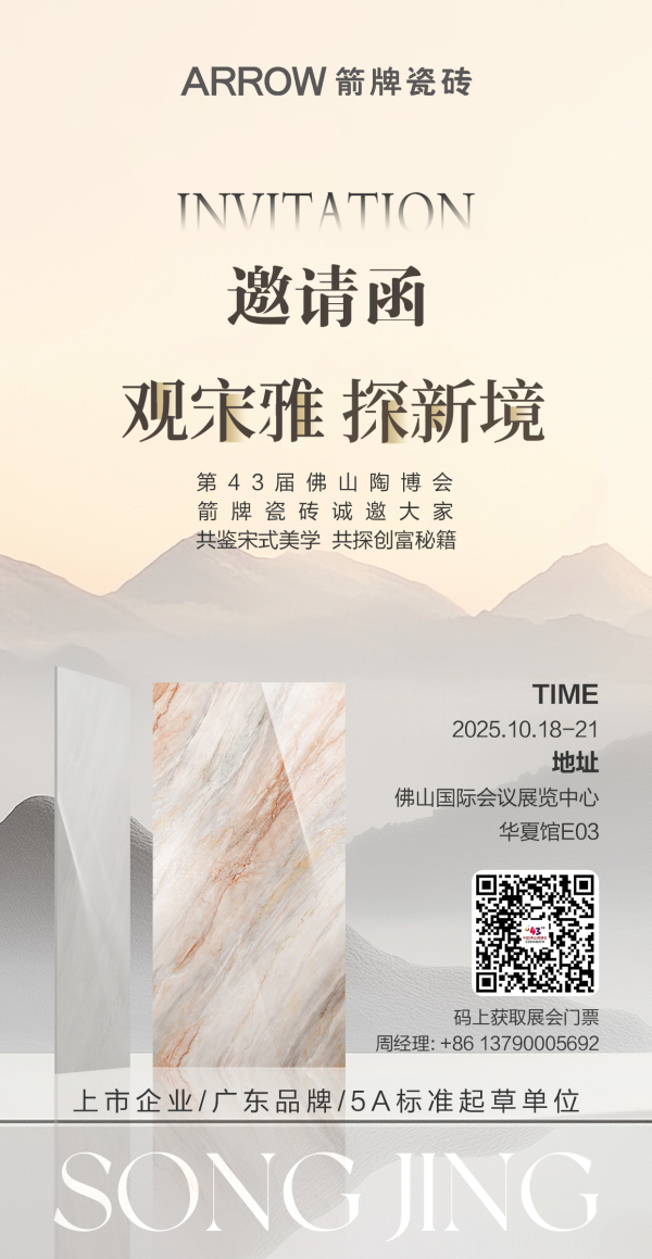 10月18日-10月21日,诚邀您莅临佛山国际会议展览中心华夏馆E03展位,近距离感受箭牌瓷砖的产品魅力与品牌实力,探索人居空间美学的无限可能!