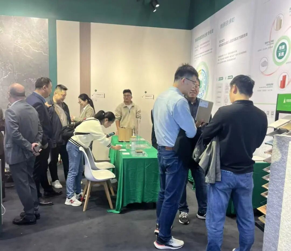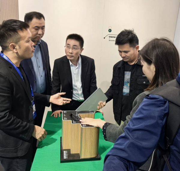 在众多参展企业中,新明珠绿材展位格外引人注目。作为绿色建材行业的领军企业,新明珠绿材围绕新明珠集团“建筑表面装饰系统化解决方案提供商”的战略定位,不仅展示了材料领域的多项创新成果,更系统呈现了整体空间方案的解决能力,为“好房子”建设提供了可落地的技术路径,引来众多参会者深入咨询与洽谈。