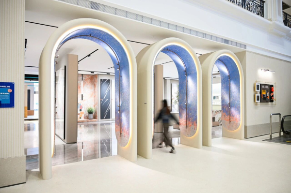 在瓷砖行业,一座大型企业展厅的装修或翻新往往面临周期长、成本高等痛点。尤其当企业需要在行业展会前更新,或采用弧形等复杂设计时,传统施工与加工工艺更会显著延长工期至半年以上。