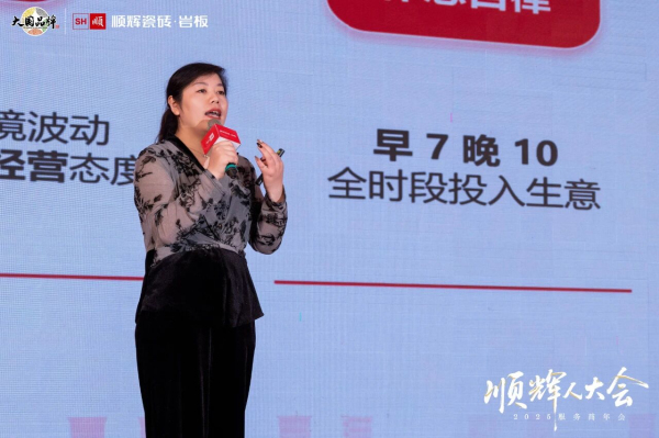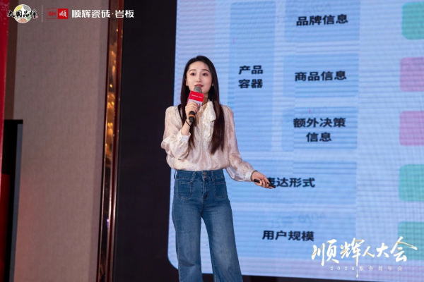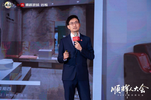 随后,顺辉瓷砖·岩板市场总监郑建发表专题演讲,系统阐述了2026年品牌赋能服务商的整体规划与实施路径,其内容涵盖全域营销战略部署、线上线下资源联动、数字化工具支持及终端动销赋能等关键环节,为服务商未来的市场拓展提供了清晰、落地的行动指南。