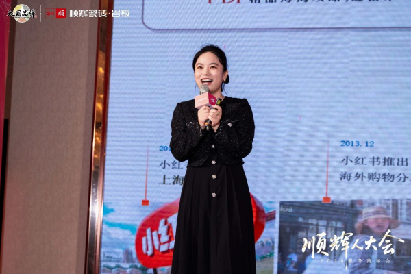 小红书家居建材行业寝具与瓷砖地板赛道负责人冯甘雨分享演讲