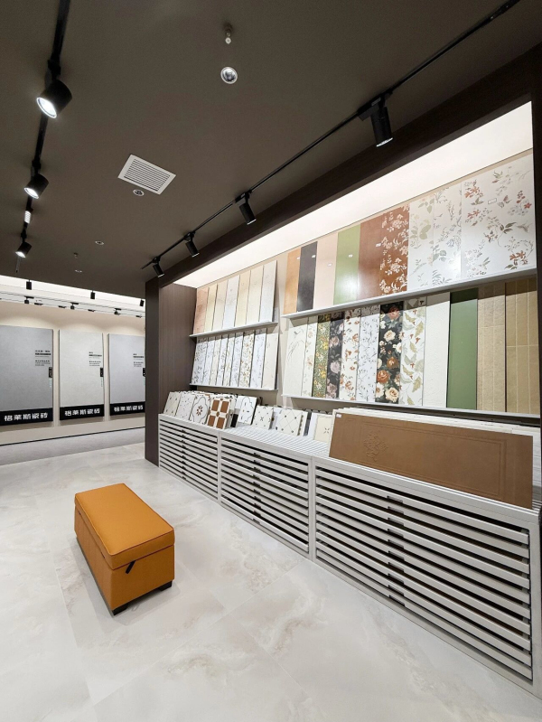 展厅采用集合店模式,融入了现代小花砖和手工砖,墙面多样材质选择构建了空间搭配的多元材料体系,强化了产品质感和空间搭配的体验感,重塑格莱斯品牌在当地的立体形象,让周总更有信心去接待每一位走进格莱斯的客人,通过实际的销售业绩回应市场的变迁。
