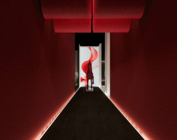 以热情的红色为主调,象征经典与东方的现代觉醒。奔腾红马,引人入境,营造“立马当红”的视觉冲击。在此,见天地,亦见奔涌的自己!
