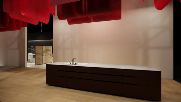 绿建新材承载东方智慧,与多元材质悄然共鸣。在“和而不同”的哲思下,新材的定制化质感,与香云纱的柔韵、岩板的坚毅、古建的底蕴等材料交织共生,实现材料与空间的破界共融。这里不仅呈现产品,更是东方生活系统解决方案的生动呈现。