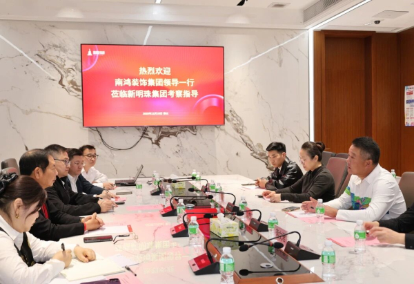 近日,南鸿装饰集团董事长祝旭慷一行参观考察新明珠集团。新明珠集团董事长兼总裁叶德林一行热情接待,双方围绕产业链协同展开深度交流,旨在携手探索高质量发展新路径,共筑绿色装饰产业新生态。