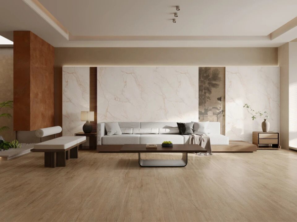 宋境·玉系列采用45°柔抛叠加冰晶干粒工艺,呈现温润玉石光感;宋境·石系列通过新一代高透釉和第四代肌肤釉技术,还原天然石材的通透肌理;宋境·锦系列运用3D立体精雕结合闪光干粒,雕琢锦缎暗纹;宋境·画系列则采用高透釉与冰晶干粒,渲染水墨朦胧意境;宋境·木系列采用仿古精雕工艺,精准复刻木材原生质感。