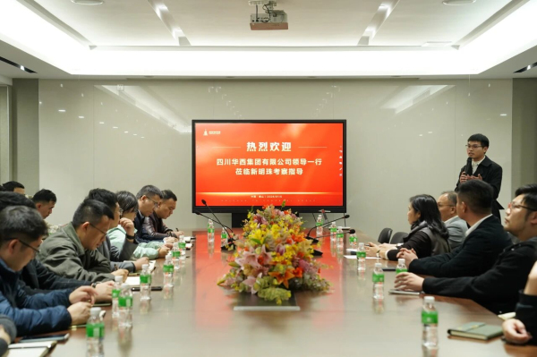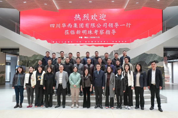 1月5日,四川华西集团及下属子公司中青干部考察团(以下简称“考察团”)一行约30人莅临新明珠集团参观交流。新明珠集团总裁梁旺娟,集团副总裁韦前等领导全程陪同接待。此次交流旨在深入调研新明珠在智能制造、绿色建材及数智化转型方面的实践成果,探讨建筑产业链上下游的协同发展与全球化合作新机遇。