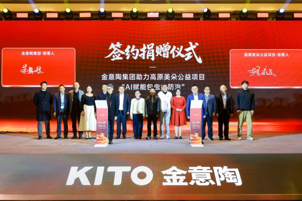爱心无界,科技向善,AI赋能公益,让爱心更有力量。金意陶始终将社会责任置于心头,持续为公益事业注入温度与力量。金意陶集团副总经理兼财务中心总经理朱炜煜与高原美朵工艺项目理事长胡毅在双方嘉宾以及全体金意陶人的见证下正式举行签约捐赠仪式,启动“AI赋能包虫病防治”公益行动合作计划,通过人工智能技术与医疗资源相结合,助力西部高原地区疾病防治,让前沿科技化作守护生命健康的坚实屏障。