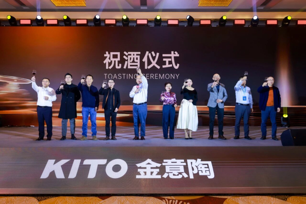 华灯初上,盛宴开席。金意陶人齐聚一堂,举杯共贺崭新征程。在灯火如星的夜色中,欢声笑语与杯盏交错相映,真挚的情谊与智慧的火花在此刻流淌。中国建筑卫生陶瓷协会会长谬斌、中国陶瓷工业协会副理事长侯文全、佛山市陶瓷行业协会会长尹虹发表致辞,同时金意陶集团副董事长黄雪芬带来智能家居主题演讲,分享金意陶在智暖模块的创新产品与服务。