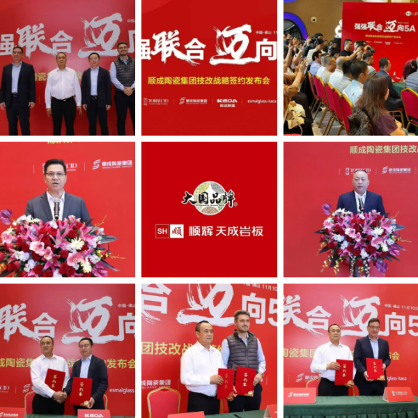 早在2025年11月10日,顺成陶瓷集团x顺辉天成岩板已在佛山总部举办强强联合,迈向5A|战略签约发布会,宣布投入5000万元用于窑炉改造与技术升级,并与科达制造、陶丽西、意达嘉等行业领军企业达成深度战略合作。通过整合全球顶尖设备、优质原料与前沿工艺,企业构建起从源头到成品的全链条品质保障体系,为5A高端产品量产落地提供了坚实支撑。本次4号窑炉技改顺利完成并首炉成功出砖,既是顺成企业对国家新国标的深度践行,也是顺辉天成岩板在智能制造与绿色生产融合发展上的重要突破。