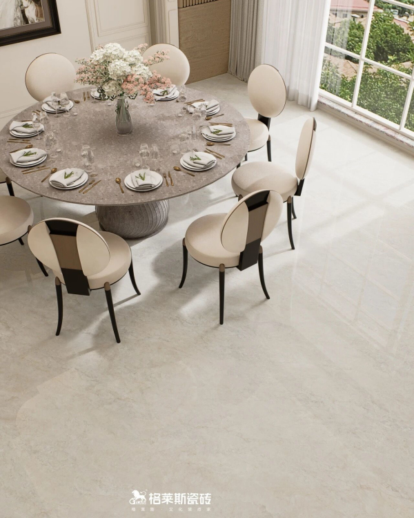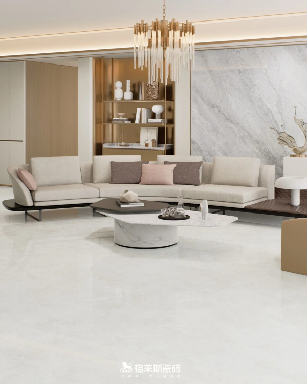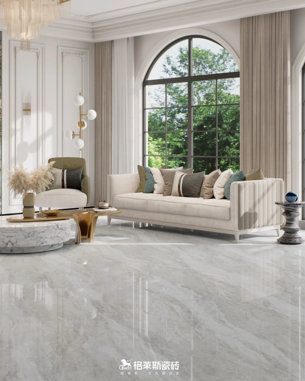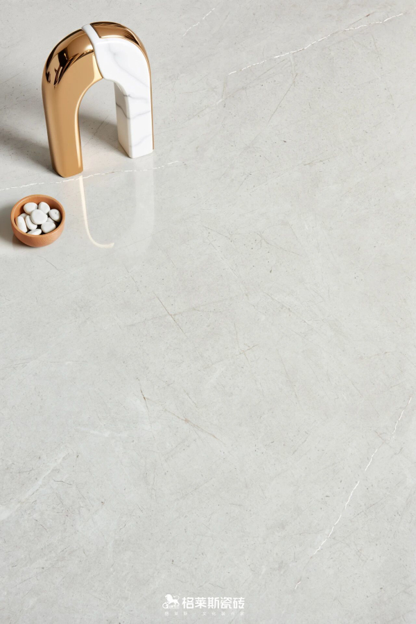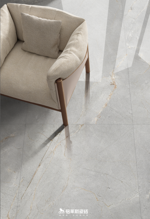 追求纹理质感的客户往往担心亮面易显廉价,而质感砖如柔光类、哑光类的产品又怕难打理,在质感和维护之间变成了选择的纠结点。格莱斯奢理石系列纹理逼真度与物理性能进行了精密重构,“干粒+耐磨釉”配方抛光后几乎无毛孔,其3D凹陷立体肌理经过浅模化设计,既保留了触手可及的高级石材肌理,又实现了出色的耐污、抗刮和易洁性能,尤其适合有宠物、儿童或追求低维护成本的家庭。