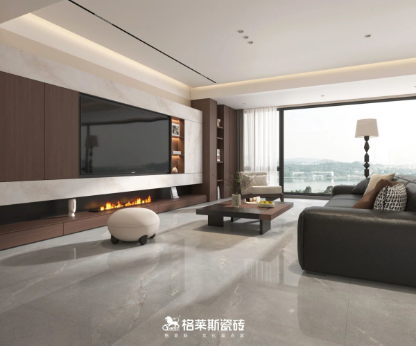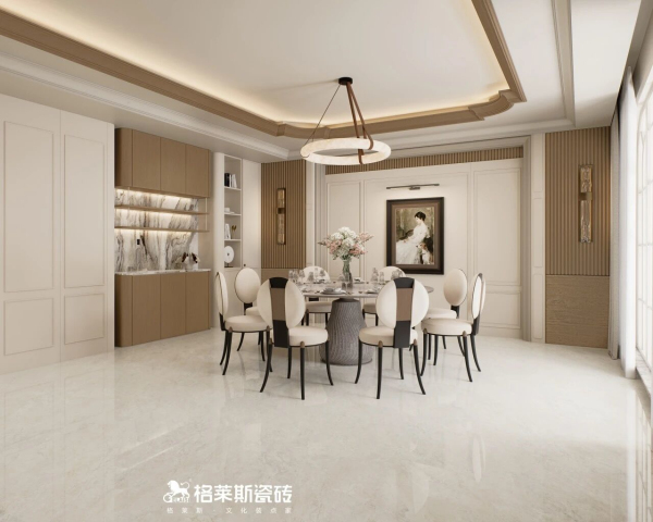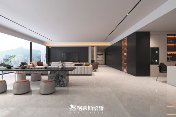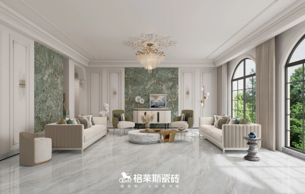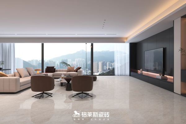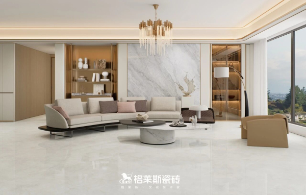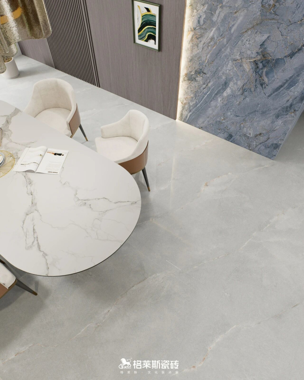 格莱斯奢理石系列自带细腻高光的清透釉面,发明专利技术《一种保护釉、大理石板材及其制备方法》加持,以高比例干粒成釉提升表面通透感,大理石纹理呈现更清晰逼真,能有效反射自然光与室内灯光,让空间更明亮,哪怕是光照薄弱的北向房间,也能通过光线折射放大空间亮度实现视觉扩容,尤其适合采光不足的户型空间。