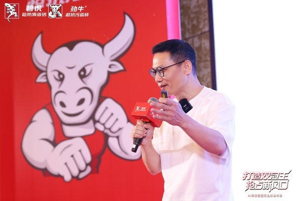活动伊始,碧虎集团董事长彭天奎为现场嘉宾深度解读双品牌战略蓝图,揭秘超抗污赛道的时代机遇与市场价值。彭总表示,作为深耕陶瓷行业二十余年的从业者,自己带领团队凭借专注功能的理念,让碧虎超防滑瓷砖连续三年斩获防滑瓷砖销量冠军,成长为享誉国内外的功能瓷砖标杆品牌。同时指出,当前陶瓷行业正经历深度洗牌,而功能化是行业的确定性未来,针对长期困扰消费者的“防滑与易洁不可兼得”的痛点,集团重磅推出劲牛超抗污瓷砖,该品牌兼具超级流量认知、金盾超抗污釉料专利技术以及360°立体盈利系统三大硬核底气,将助力经销商轻松盈利。未来,碧虎集团将以碧虎防滑、劲牛抗污双品牌双轮驱动,携手合作伙伴共同抢占功能瓷砖市场。