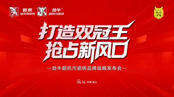 在陶瓷行业从“规模扩张”全面转向“功能细分+价值竞争”的关键转型期,4月14日,“打造双冠王・抢占新风口”——劲牛超抗污瓷砖品牌战略发布会在佛山隆重举办。一众行业协会领导,行业主流媒体,以及全国200余名核心经销商齐聚一堂,共同见证碧虎集团从“单赛道冠军”向“双赛道领跑者”的战略升级,开启功能瓷砖双冠王新时代。这场集战略发布、技术解密、IP揭幕与厂商共生见证于一体的盛会,以“技术深耕+双赛道协同+全维度赋能”的三轮驱动模式,为陶瓷行业摆脱同质化竞争、迈向高质量发展提供了可借鉴的全新实践路径。
