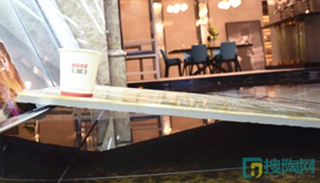 对于有老人和小孩的家庭,防滑性好的瓷砖简直就是必备品。为了检测这款瓷砖是否够防滑,测评人员将瓷砖倾斜放置,并在瓷砖表面洒满水,并将装满水的纸杯放置在瓷砖表面,静候几分钟,纸杯在瓷砖表面并没有出现滑行现象,说明这款瓷砖的防滑性是很过关的。